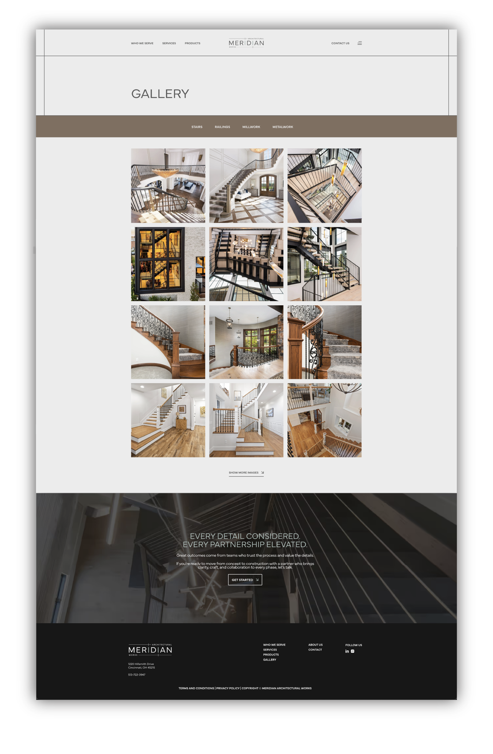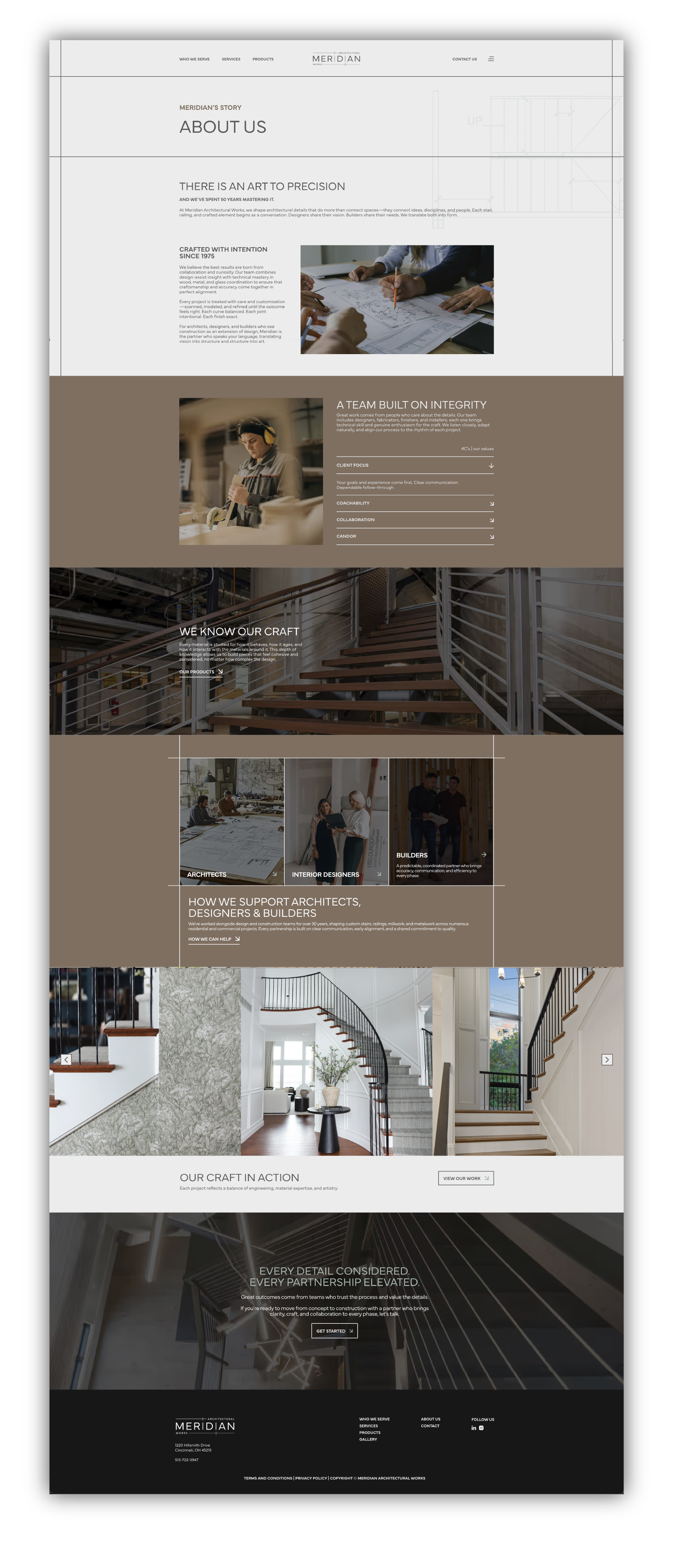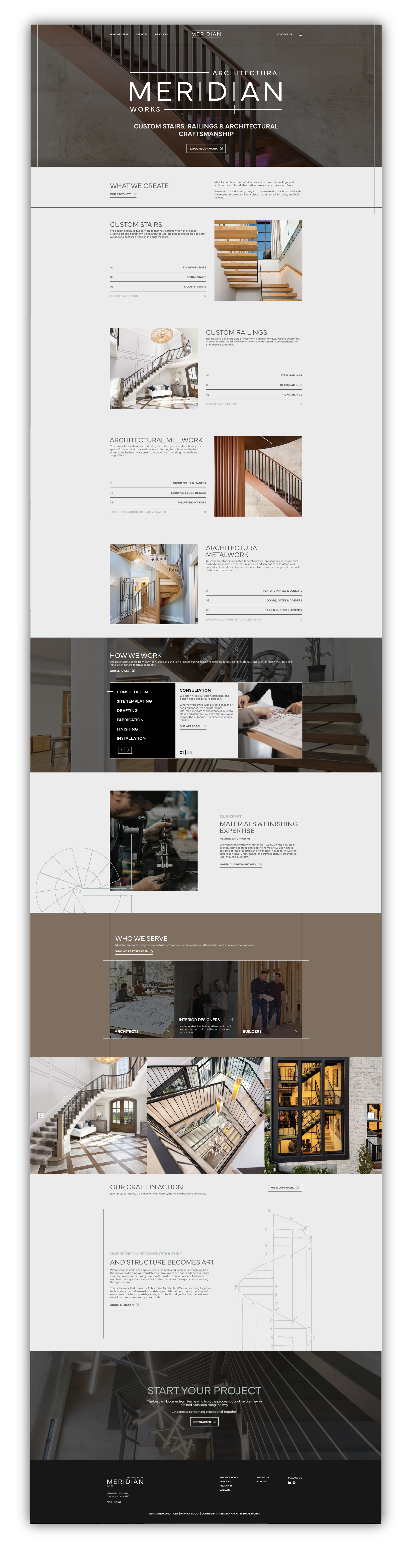 Meridian Architectural Works was created to clarify and elevate the bespoke, design-forward side of a long-established Cincinnati-based company previously known as Cincinnati Stair. While Cincinnati Stair continues to serve as a contractor-focused division, Meridian represents a refined, collaborative offering tailored to architects, interior designers, and builders