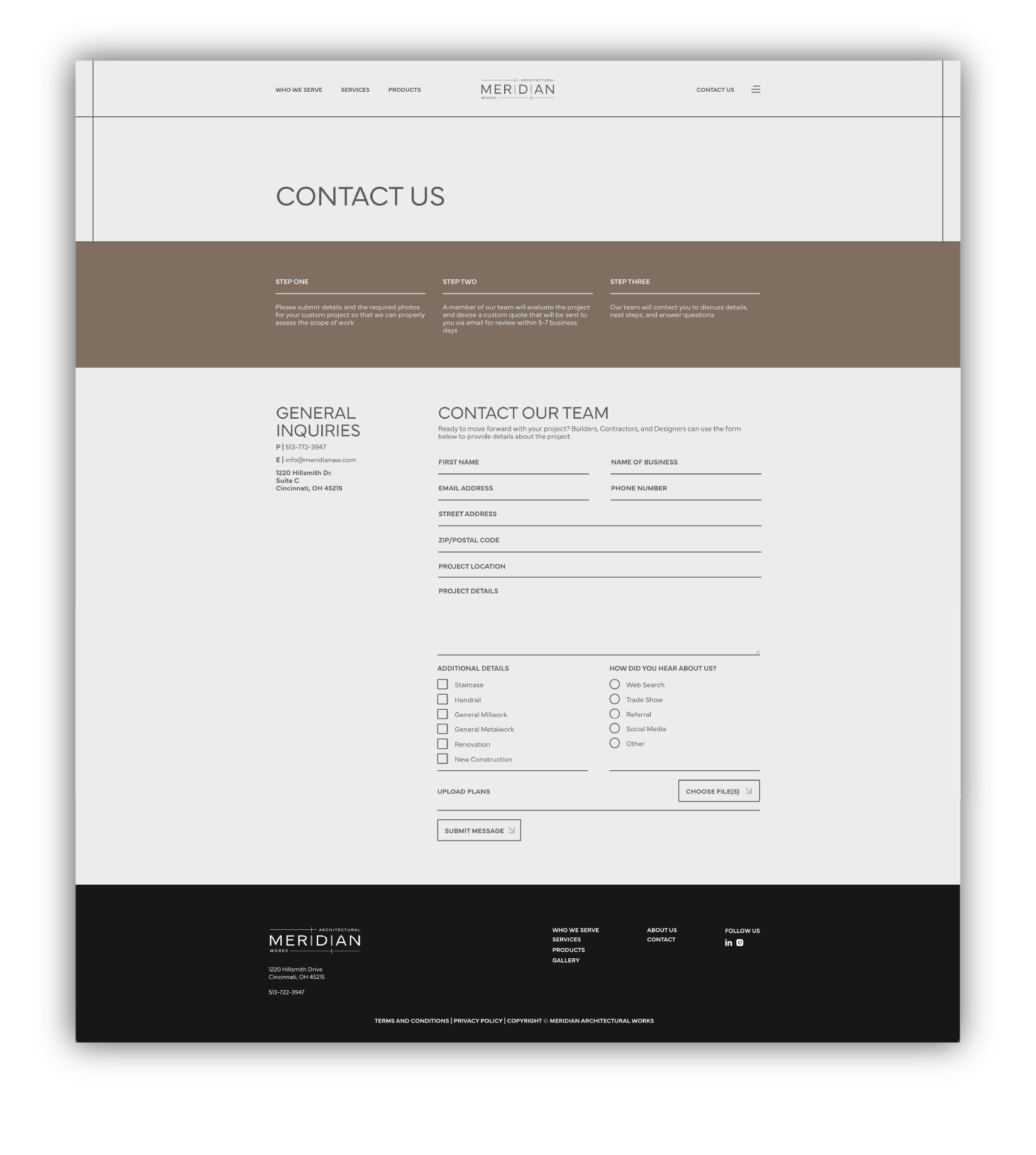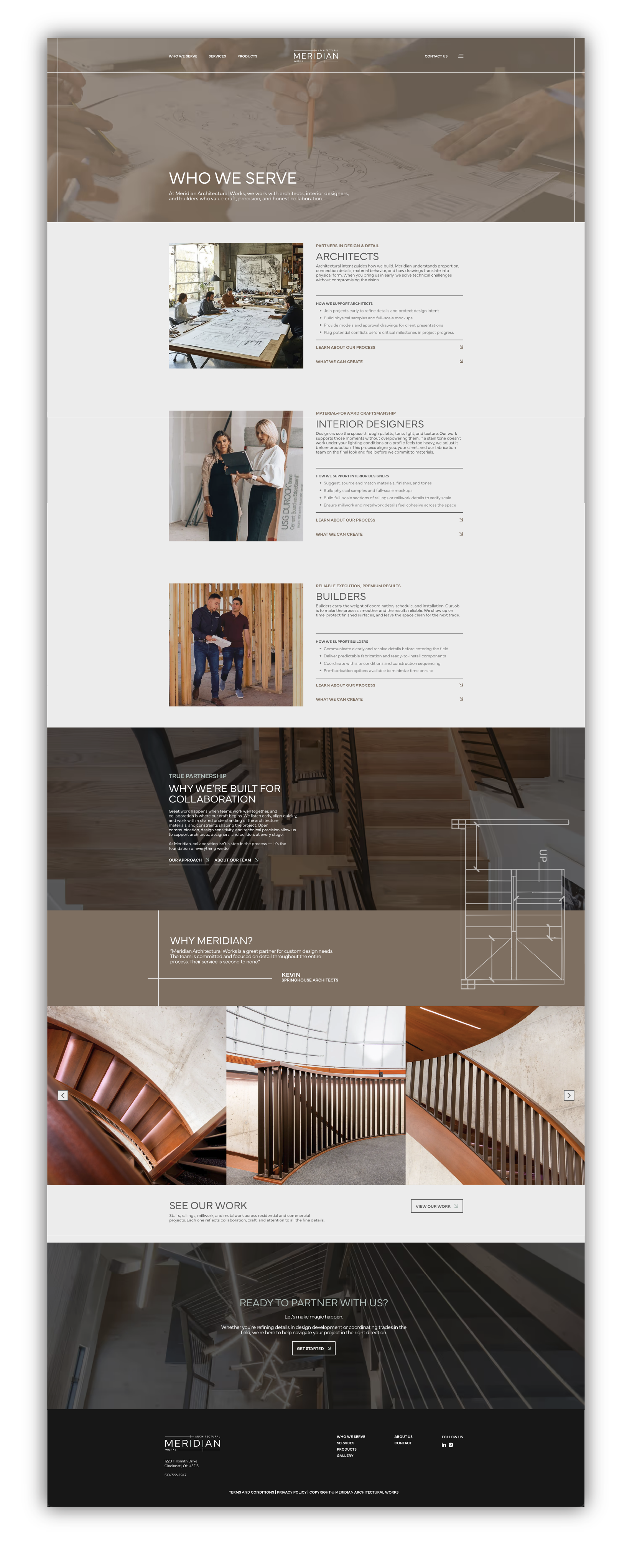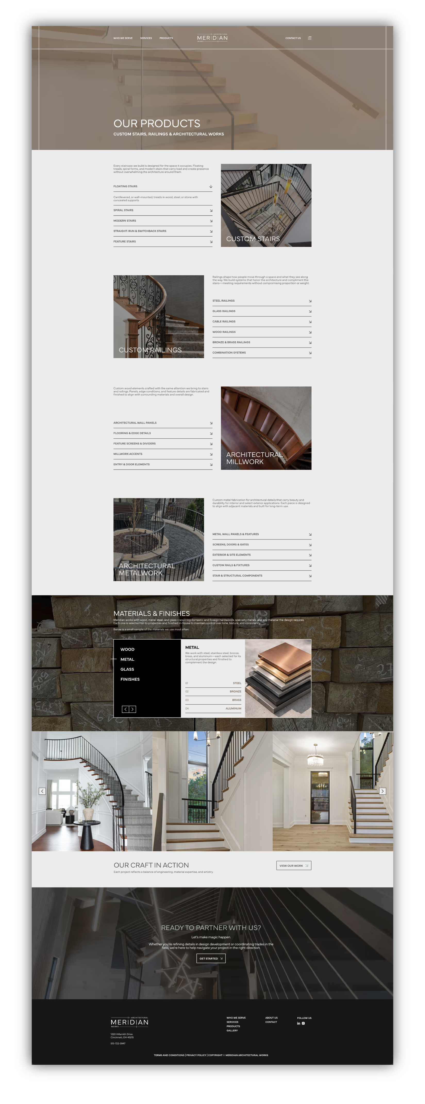 Meridian Architectural Works was created to clarify and elevate the bespoke, design-forward side of a long-established Cincinnati-based company previously known as Cincinnati Stair. While Cincinnati Stair continues to serve as a contractor-focused division, Meridian represents a refined, collaborative offering tailored to architects, interior designers, and builders