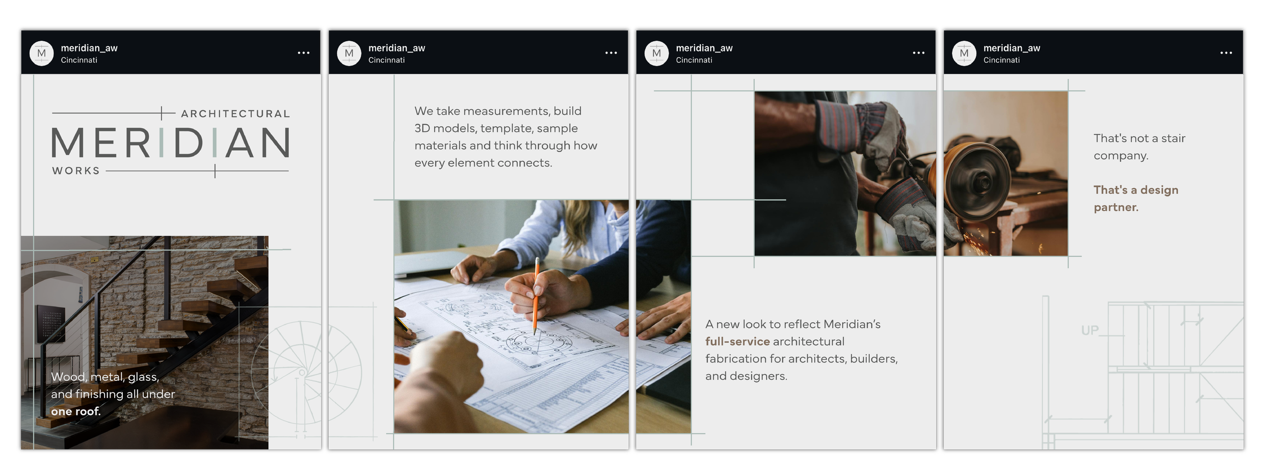 OCELLI led the development of Meridian’s brand to better reflect its role as a high-touch, design-assist partner in architectural millwork and metalwork. The brand was built around a balance of craft and collaboration, positioning Meridian as both a technical expert and a creative partner in the design process.